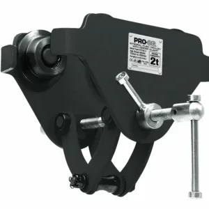Diese Troll-Linie hat eine Nennarbeitslast (W.L.L.) von 1 bis 30 Tonnen, wenn es mit Handflaschenzügen für präzise Positionierung und einfache Bewegung schwerer Lasten verwendet wird. Es kann an verschiedene Schienenbreiten angepasst werden, innerhalb der Standardträger I-Träger (a) e da verlängertes I-Trägerfeld (b).