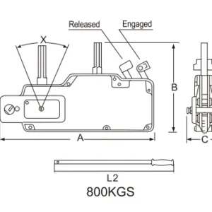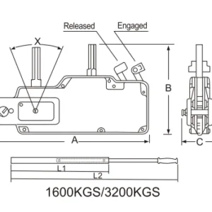 | Código do produto | Nennkapazität (kg) | Kabelbewegung pro Hub (mm) | Nennkraft manuell (N) | Kabeldurchmesser (mm) | Comprimento Padrão do Cabo de Aço (m) | Nettogewicht ohne Stahlseil (kg) | Gewicht des Stahlseils (kg) | Dimensões Máximas (mm) | L1 (cm) | L2 (cm) |